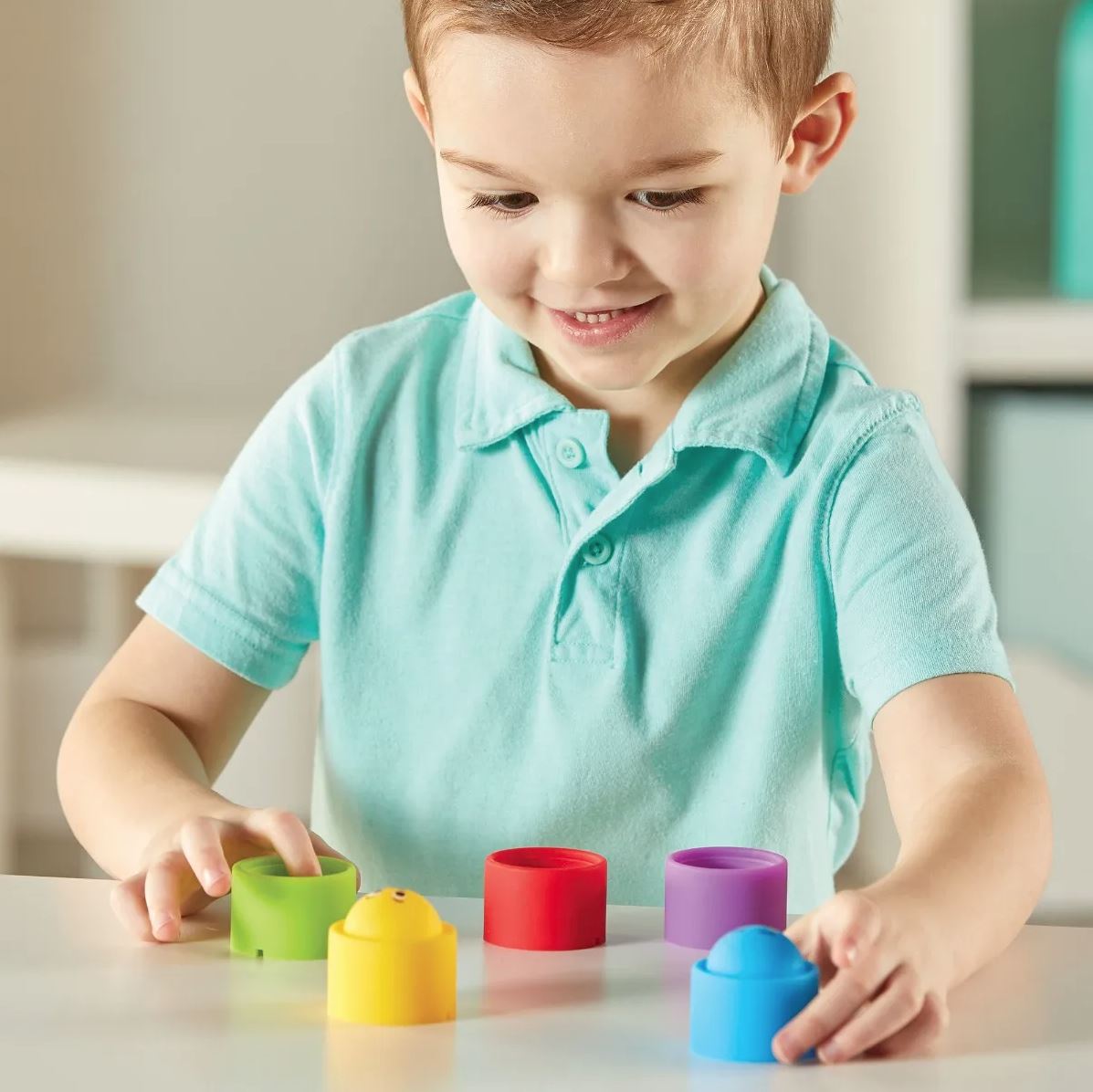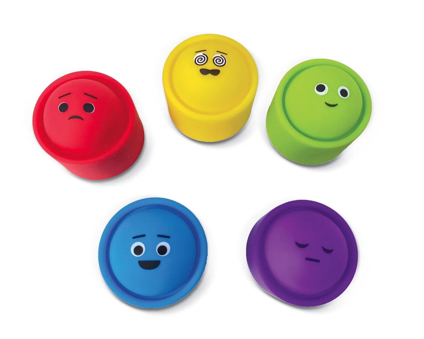 A puha szilikonból készült, kis kezekhez méretezett, színes popperek egy meglepetést is tartogatnak – mindegyiken különböző hangulatú arc látható, amit a gyerekeknek felismernek, megnyílnak és beszélnek az érzéseikről. A popperek egymásra is rakhatók, így finommotorikus játékként is használható.