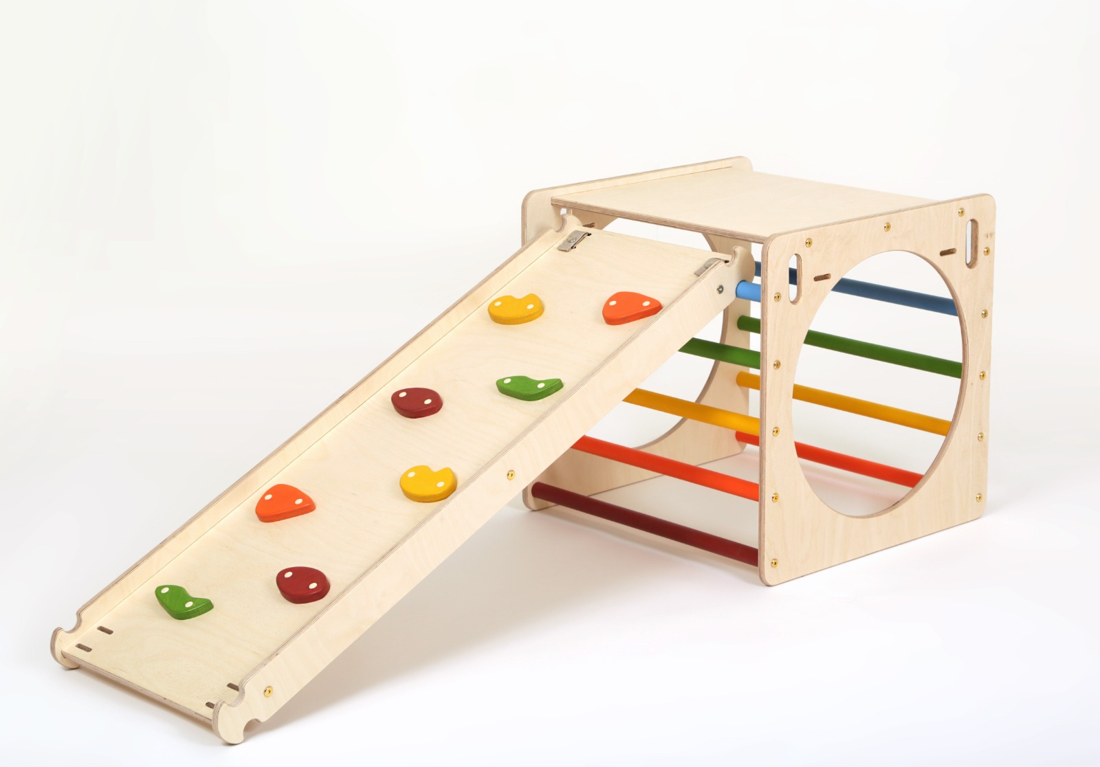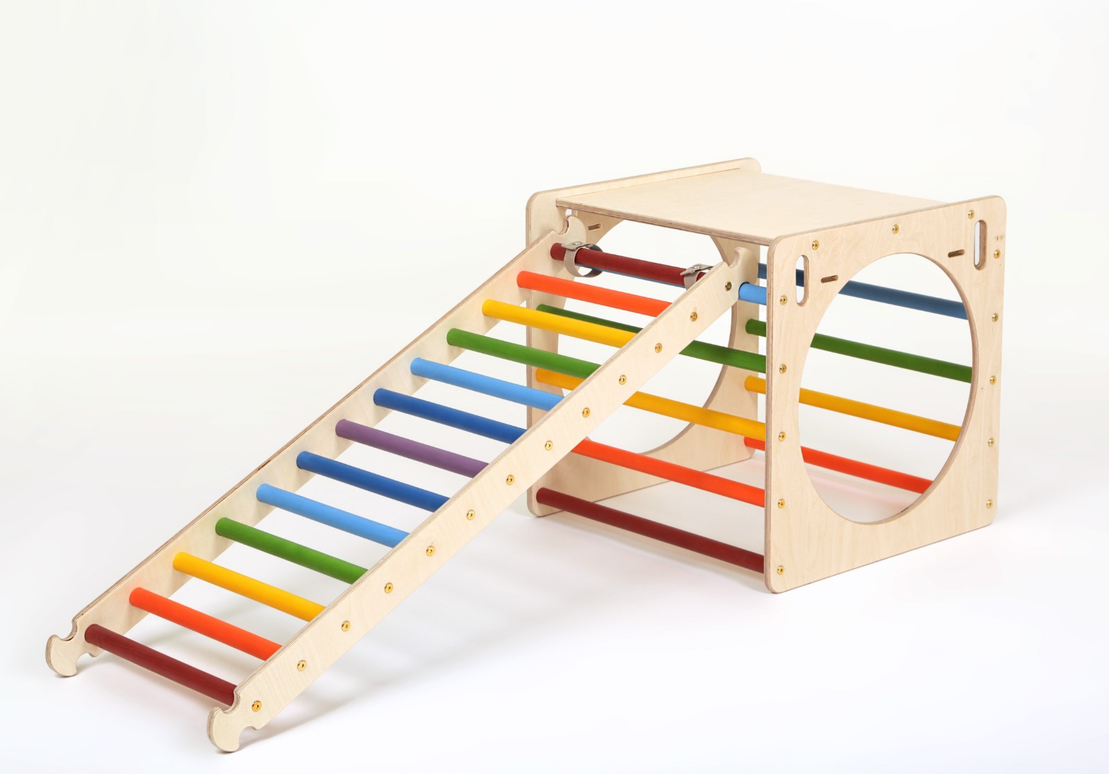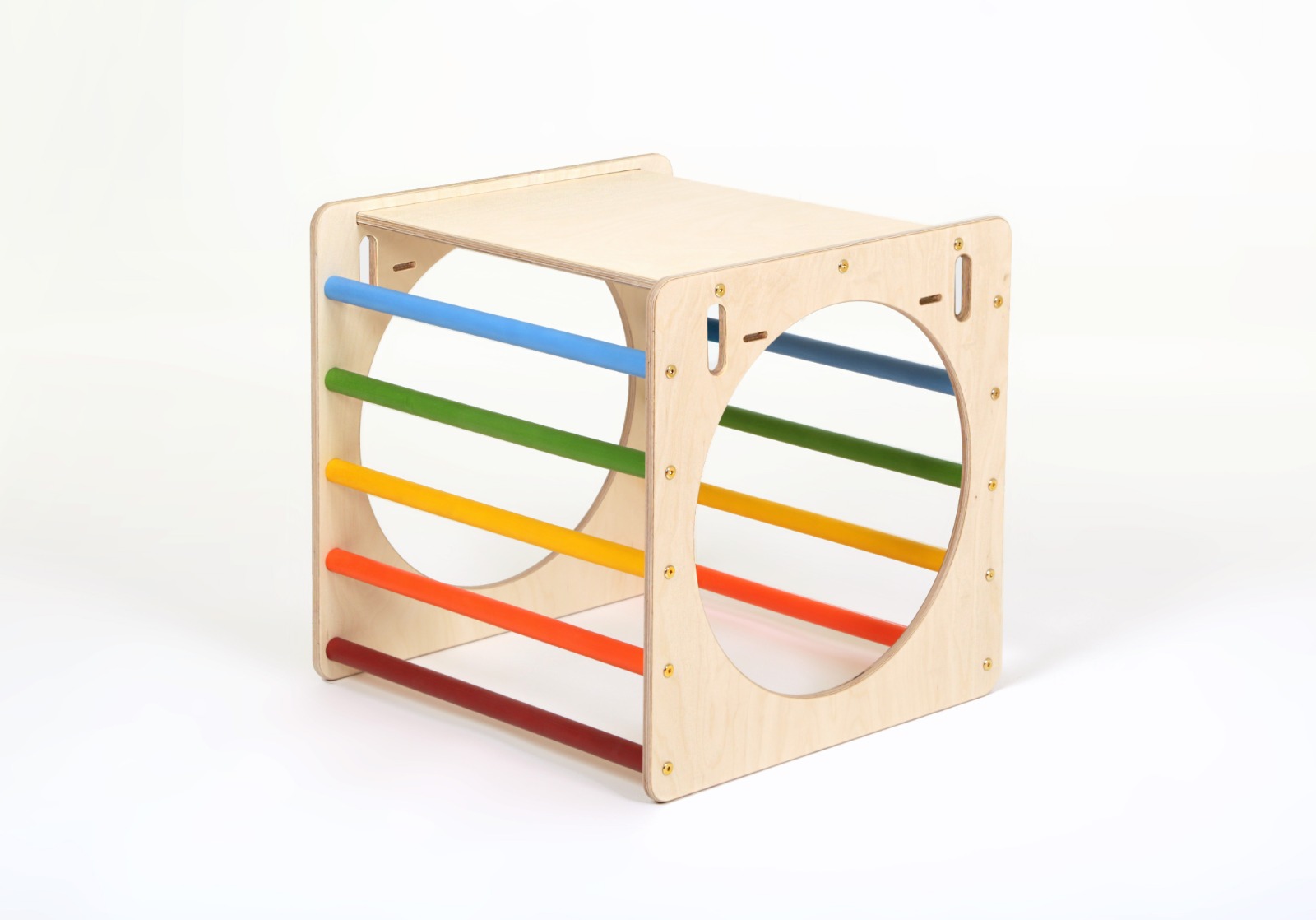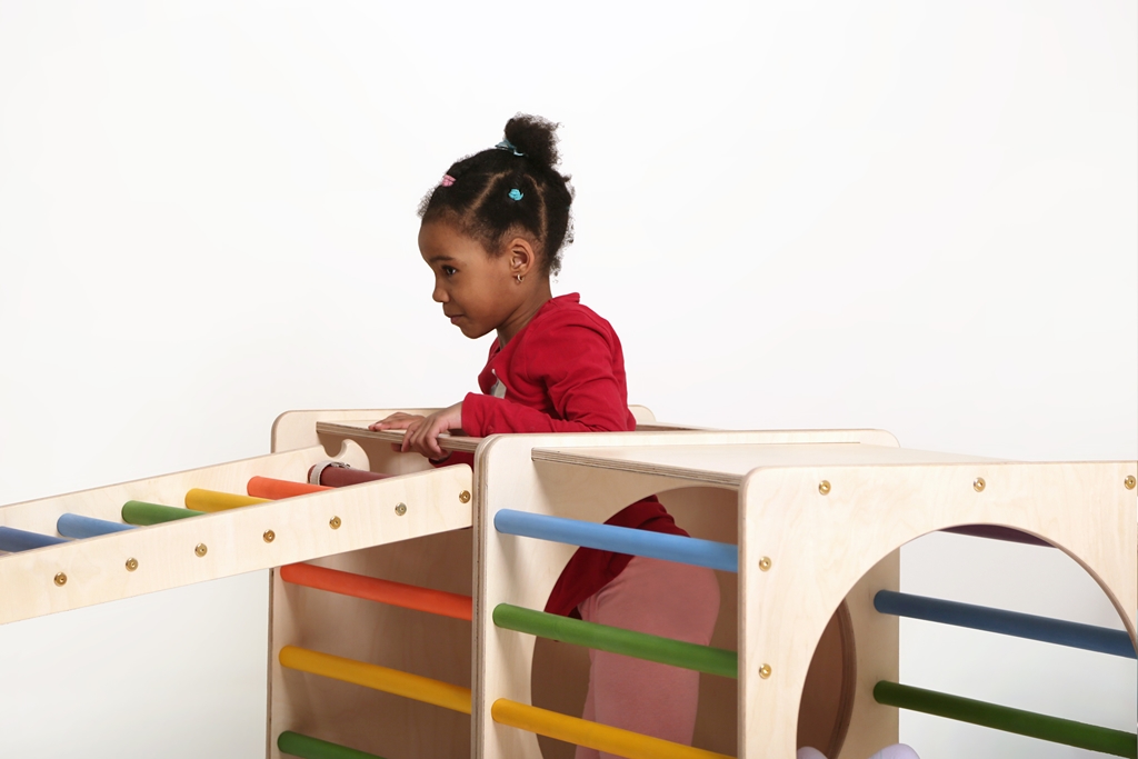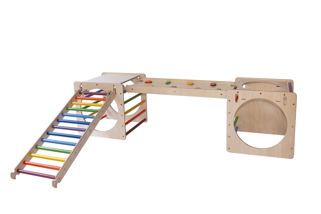 A Kalandor kockaszett ötletes kialakítása által a gyerekek nem csak rudakon mászhatnak, de kör alakú nyílásaikon keresztül is átbújhatnak.