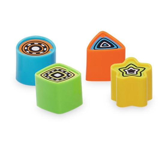 A 4 különböző alakú forma illeszkedik a formabedobó oldal megfelelő részeibe, így fejlesztve a szem-kéz koordinációt.