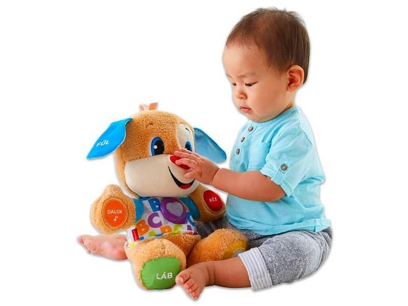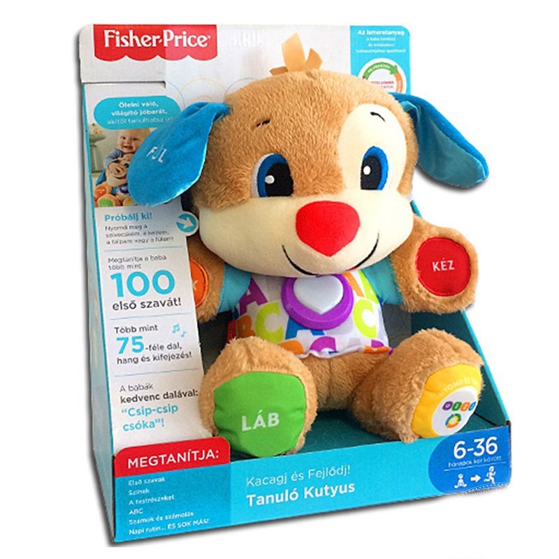 A legújabb Fisher-Price Tanuló Kutyus nagyban hozzájárul a gyerekek fejlődéséhez. Két interaktív mód tanítja és szórakoztatja a kicsiket, melyek használatával megismerkedhetnek a színekkel, számokkal, érzelmekkel, testrészekkel, az ABC betűivel, új szavakat tanulhatnak, és 20 db, közösen énekelhető dalocskát is elsajátíthatnak. A játék nem csak a baba tanulását segíti, de az ölelgetni való Kutyussal az érzelmek kinyilvánítására, a szeretet kifejezésére is ráveszi a kicsit. A játék 3 db AA 1, 5V-os elemmel működik, melyet a csomagolás tartalmaz.
