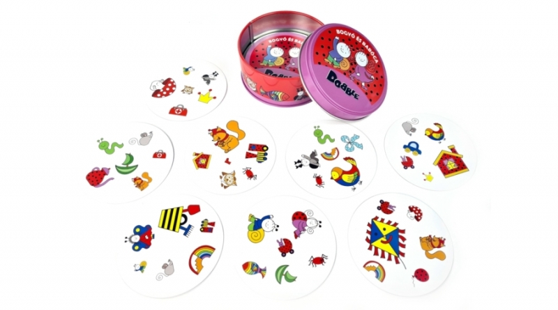 A pakli 30 lapjából bármelyik kettőn van egy azonos forma, ami maximum nagyságban térhet el. Minden kártyalapon 6 képecske található. Hogy melyik az amelyik egyezik kettő különböző lapon? Na, hát éppen azt kell megtalálni. 5 különböző játékot építettek erre, találtak ki, melyek mindegyike fergeteges partit képes csinálni. Kicsitől a nagyig, akár felnőttkorban is, mindenki élvezi, mindenkinek használ, hiszen a megfigyelés képességét a maximumra fejleszti a játék által. Zsúrokra, partikra, de még utazásra is kitűnő választás.