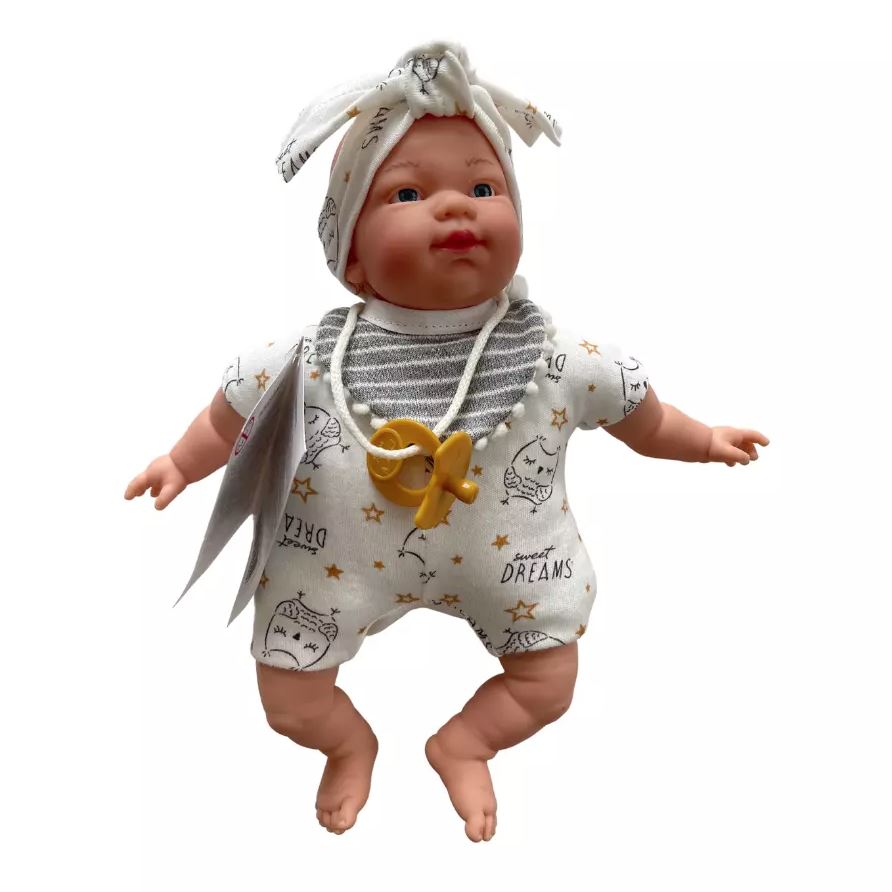 Csecsemő baba - baglyos ruhában, kopasz, 26 cm 24 hó+ NINES0600