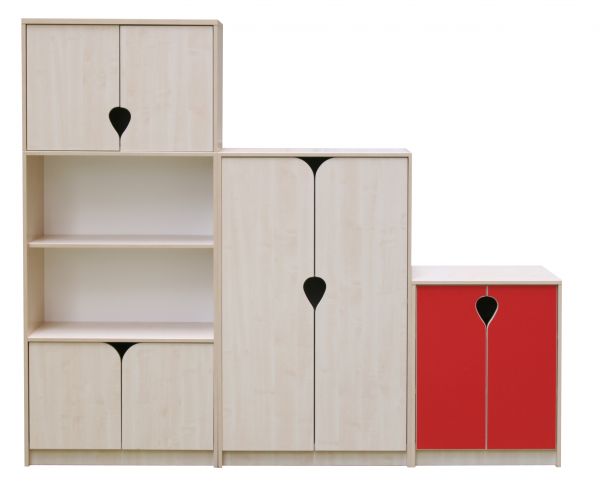 A Laura szekrénysoraink laminált bútorlapból készülnek, ABS élzárással. A szekrénysor különböző színekben rendelhető juhar, világos bükk, bükk, biofenyő, öregcseresznye).