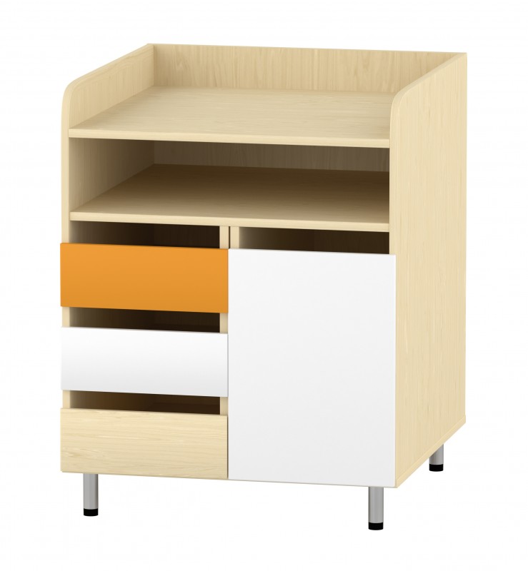 Pelenkázószekrény 3 fiókkal, 1 oldal szekrénnyel.