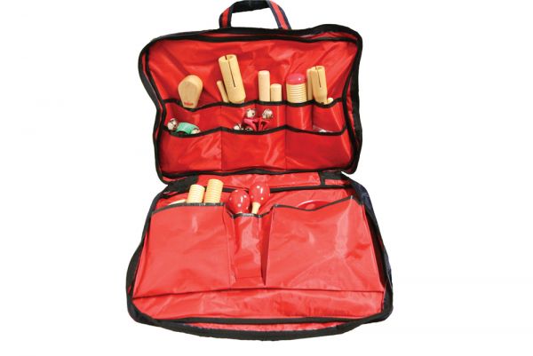 A hangszerek igényes, fakkokkal ellátott zipzáros tárolóban vannak elhelyezve, igény esetén nyitott állapotban felakasztva is tárolhatók benne az eszközök.