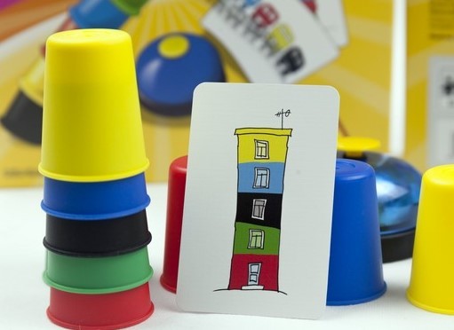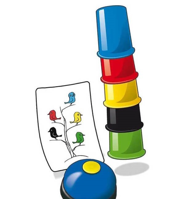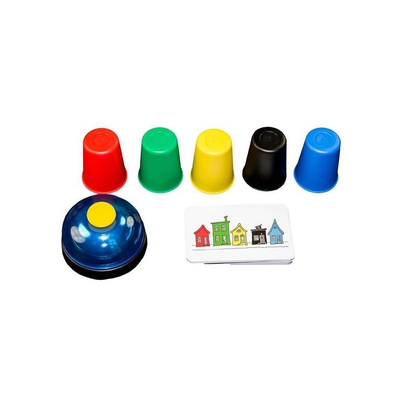 A játék menete: Mindenki kap 5 db színes poharat, majd felcsapunk egy kártyát! A kártya megmutatja, hogyan kell a poharakat egymás mellé tennünk. Vagy egymásra kell állítanunk? Amint a feladat látható, kezdetét veszi az kapkodás! Helyes sorrendben állnak a poharak, villámgyorsan csapjunk a csengőre! A játék megnyeréséhez ügyesnek, jó megfigyelőnek és gyorsnak kell lenni! Egy igazán vidám akciójáték az egész család részére!