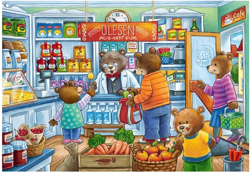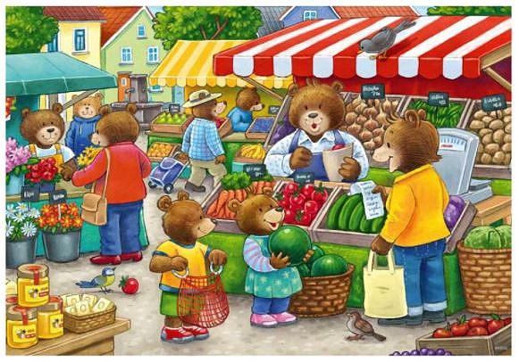 A vásárlás a boltban puzzle remek kikapcsolódás és koncentráció fejlesztő elfoglaltság akár az egész család számára, vagy csak önmagunk szórakoztatására. Az egyik puzzle a boltban-, a másik puzzle a piaci vásárlást mutatja be. A gyerekek megismerkedhetnek a különböző élelmiszerekkel, zöldségekkel, gyümölcsökkel. Fejleszti a logikus gondolkodást, finommotorikát.