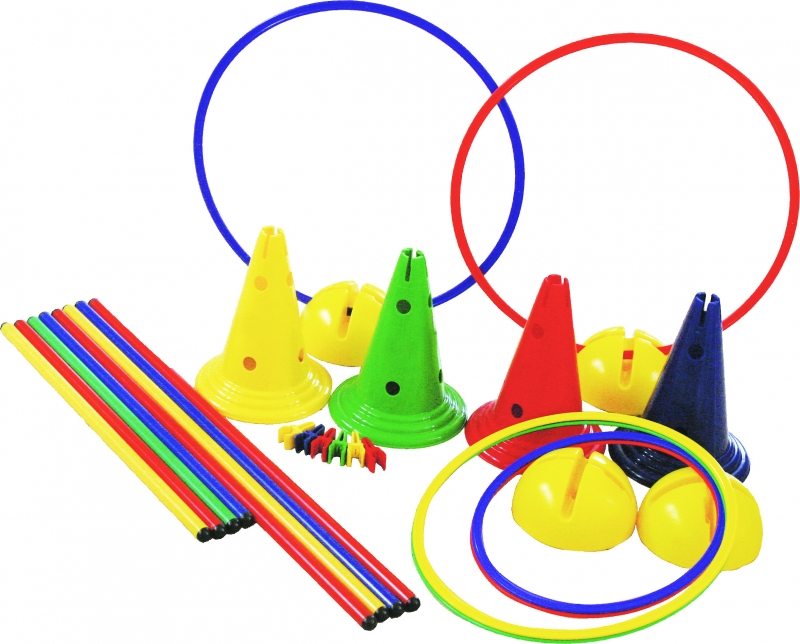 A készlet segítségével ügyességi, akadálypálya vagy akár versenypálya is építhető. Aktív csoportos foglalkozások és órák kiváló eszköze.