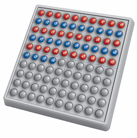 Tartalma: 1 db oktató alaptábla 100 db számgolyóval