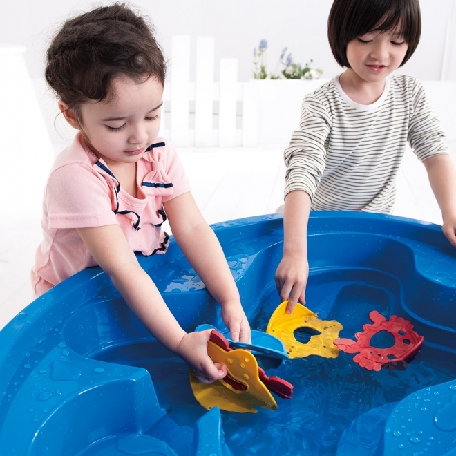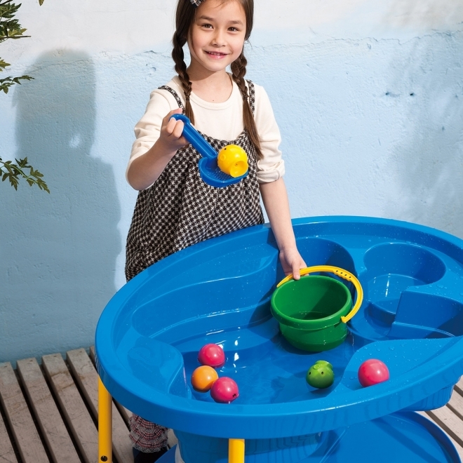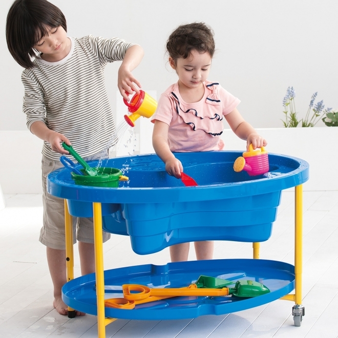 A homokozó-vizező terepasztal udvari illetve csoportszobai használatra is kiváló. A terepasztal könnyen gurítható, lefedhető illetve a víz egyszerűen leengedhető belőle. Kerekei fékezhetőek, magassága állítható.