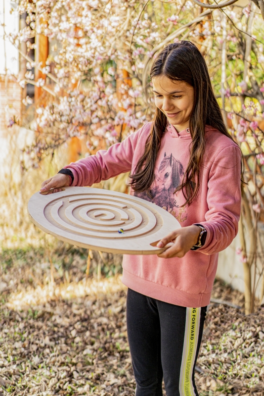 A kézvezető csiga játék komplexen fejleszti a szem-kéz koordinációt, a finommotorikát és a figyelmet egyaránt.
