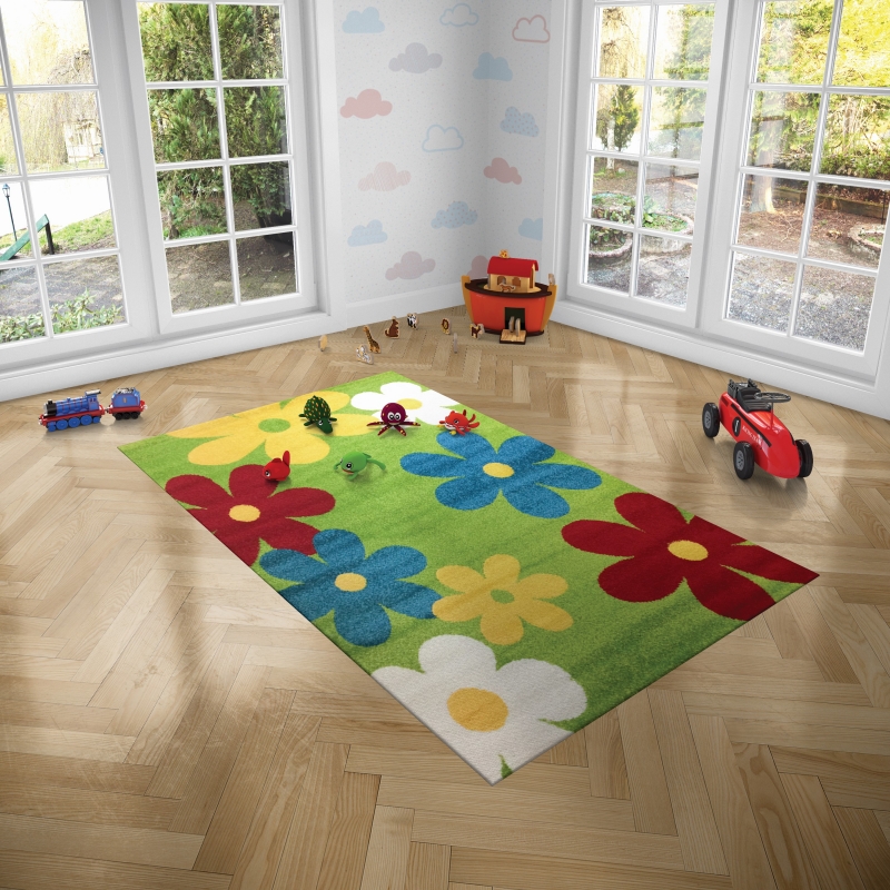 Bájos, aranyos, virágos szőnyeg. Tökéletes választás bölcsődéknek, óvodáknak vagy akár otthonra, gyermeke szobájába, melyet vidámmá és játékossá tehet.