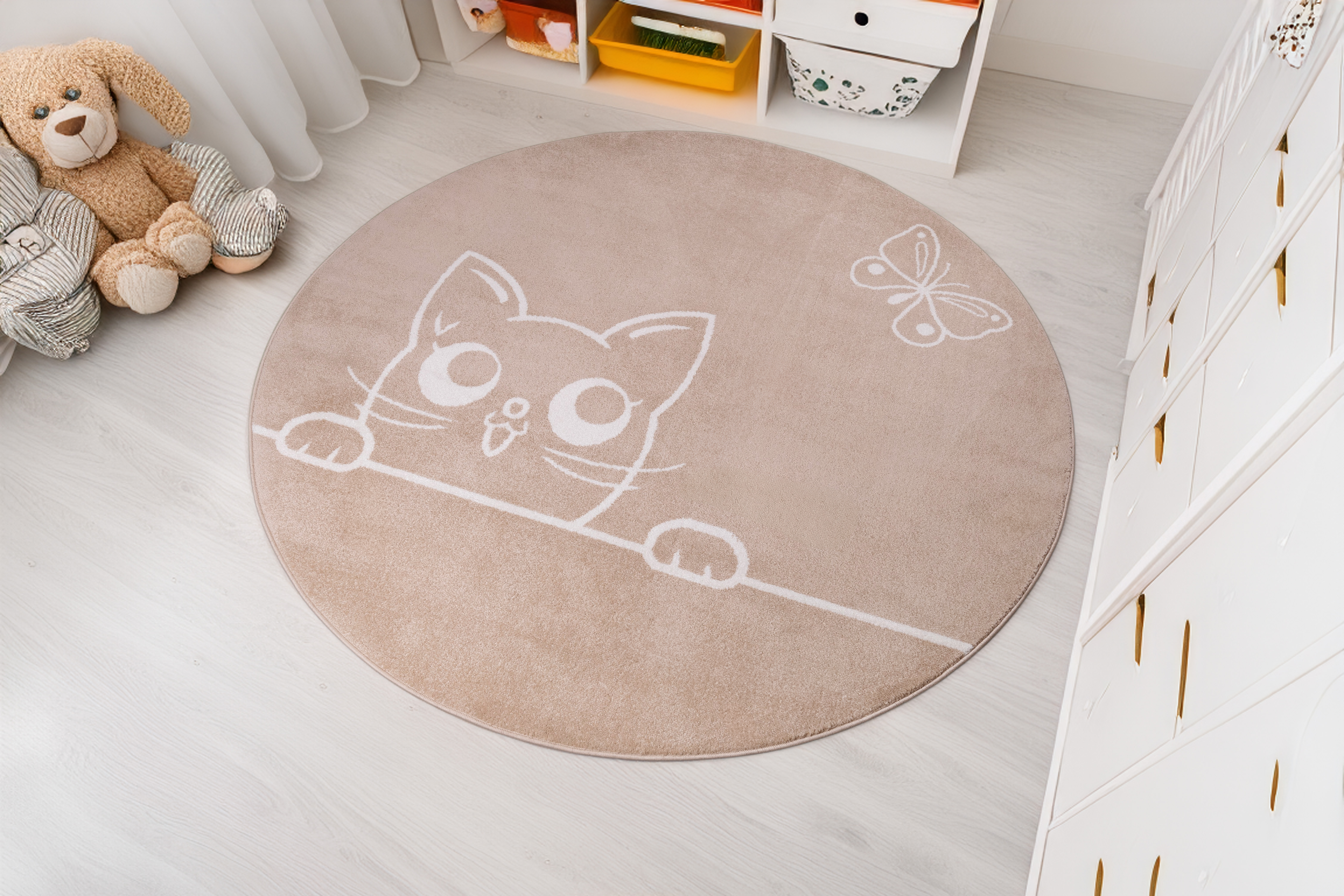 Sziluett körszőnyeg, Cicás Bézs, 200 cm TXT BE269K