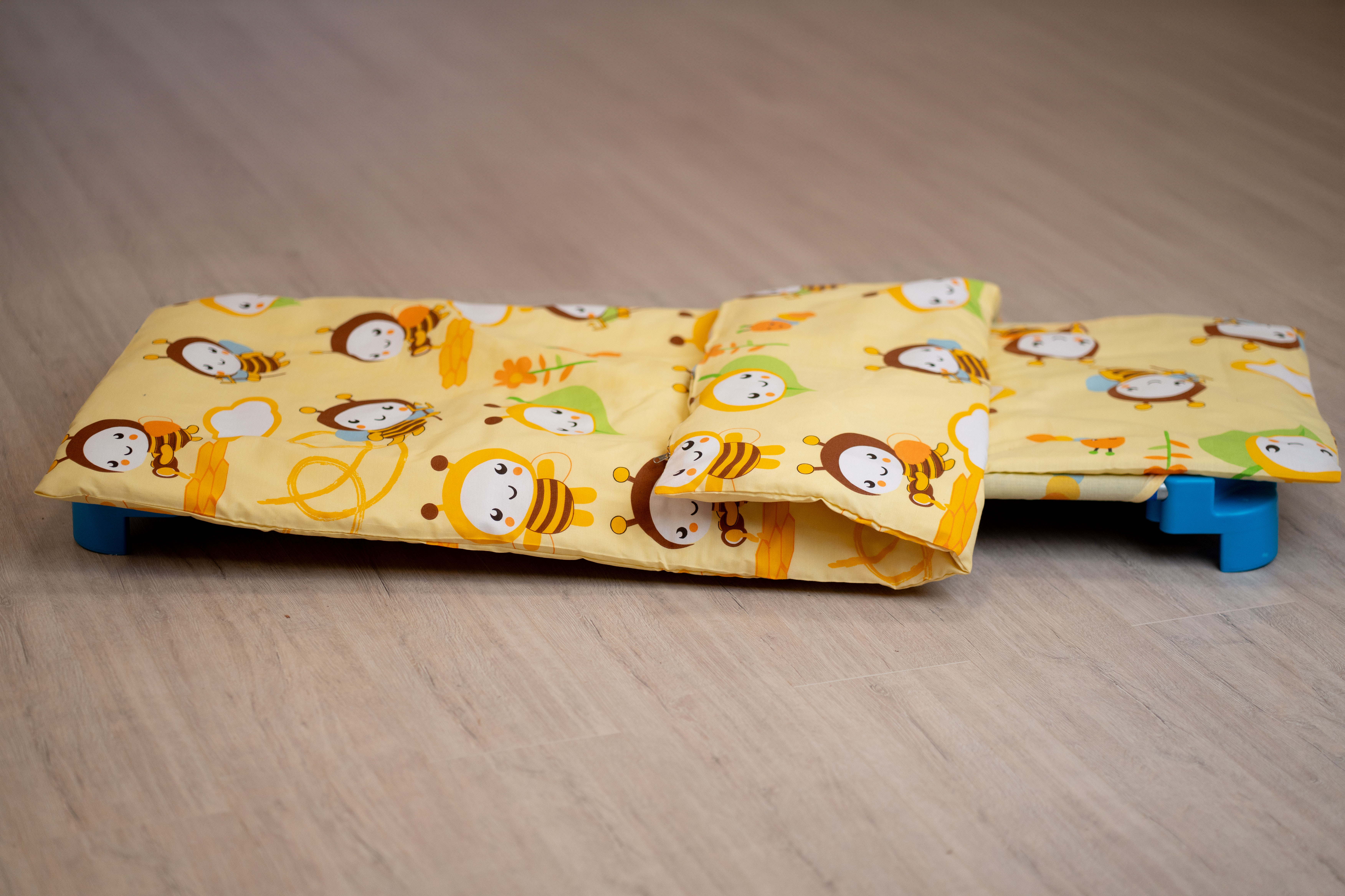 Mintázata: halványsárga alapon bájos méhecskés mintával.