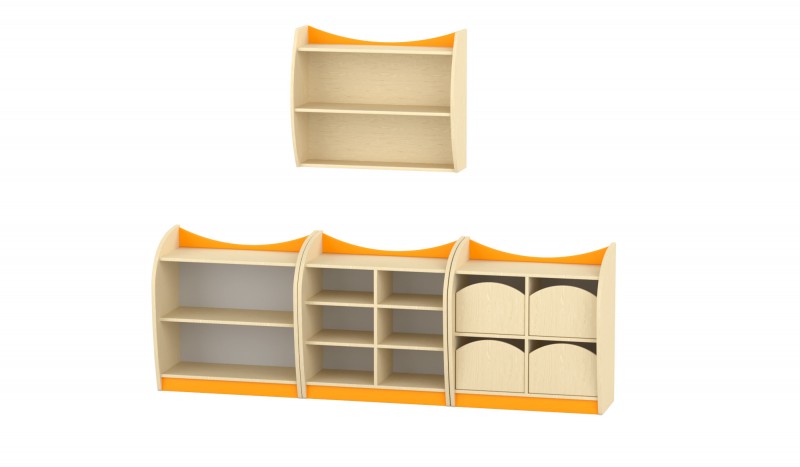 Marci íves kisszekrény - 6 fakkos, nyitott, juhar-narancs, 82x38x86 cm OP 4004N