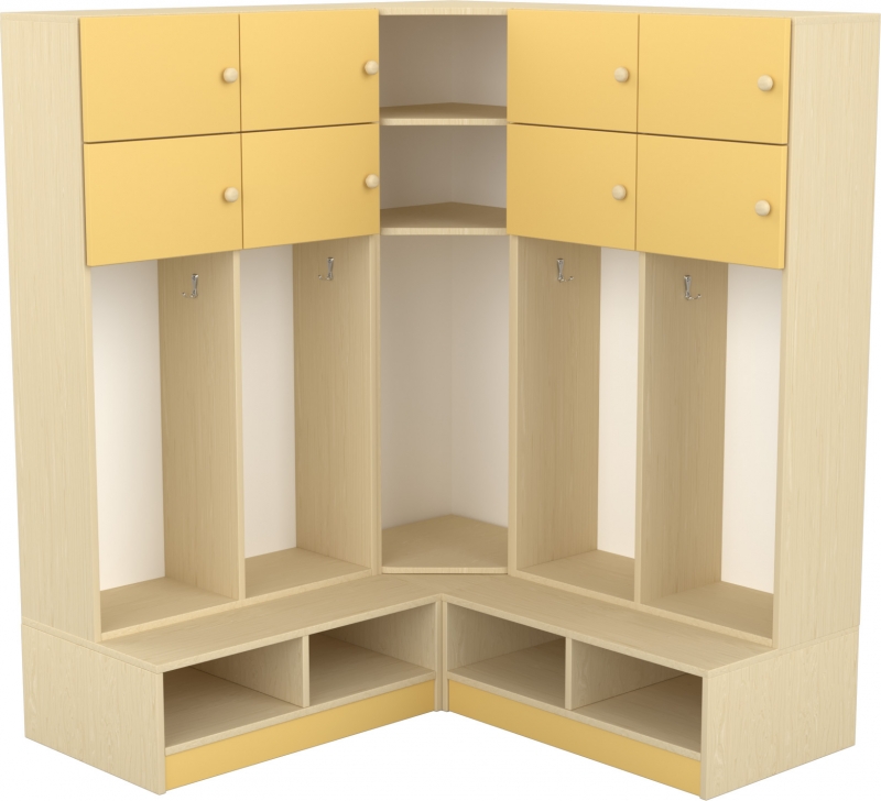 Rendelhető rácsos vagy polcos cipőtartó résszel, juhar vagy világosbükk alapszínben, attól függően mi illik legjobban az adott csoporthoz.
