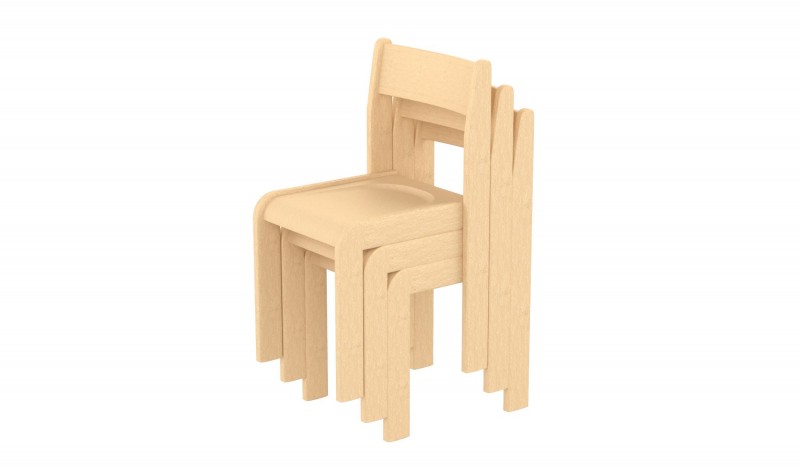Mélyített ülése és íves háttámlája biztosítja a gyermekek helyes testtartását, egészséges fejlődését. Az ülés és háttámla rétegelt lemezből, a szék szerkezete bükkfából készül, vízbázisú környezet és gyermekbarát lakkal kezelve.