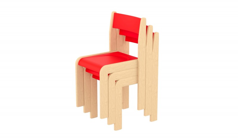 Mélyített ülése és íves háttámlája biztosítja a gyermekek helyes testtartását, egészséges fejlődését. Az ülés és háttámla rétegelt lemezből, a szék szerkezete bükkfából készül, vízbázisú környezet és gyermekbarát lakkal kezelve.